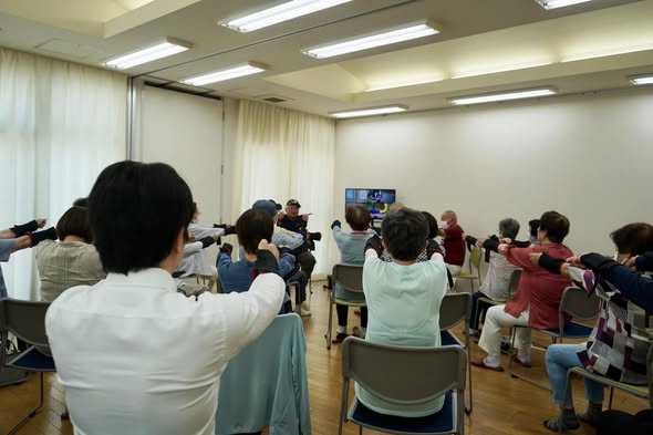 ニュース 地域の「百歳体操」に参加 2025.07.6 ニュース Tweet 地域の「百歳体操」に参加。 椅子に座って、ゆっくり、じわっと効く筋トレ。途中から手首と足首におもりをつけて、全身プルプル。 92歳の男性が、余裕の完遂。 体の硬い私は、ごまかしながら何とか完遂。 ……柔軟、大事ですね。 Tweet 安全大会に出席前の記事 杉ひさたけ 街頭演説次の記事