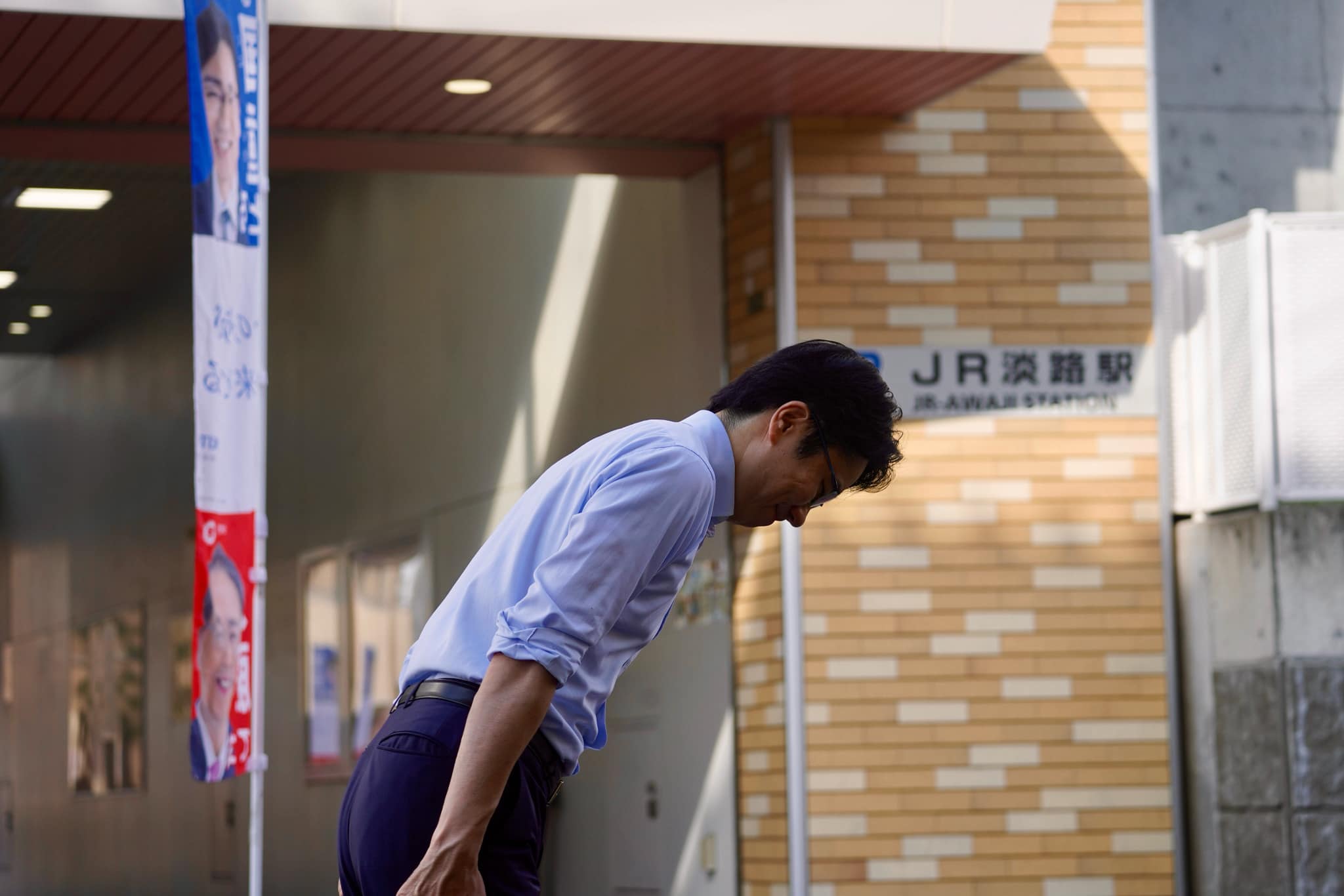 駅頭あいさつ中、反対側の出口に佇む女子高生をわが娘と思い込み、これまでにない光景に少し戸惑いつつ、外で声をかけたら嫌がられるよな…と思いつつも、そちらに足を向けていく。