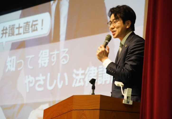 日頃の感謝の思いを込めて、政治家というより、弁護士・国重として、「知って得する やさしい法律講座」を順次開催中。眠くならないよう、少しでも笑ってもらえるよう、笑いのタネも仕込んでいます。