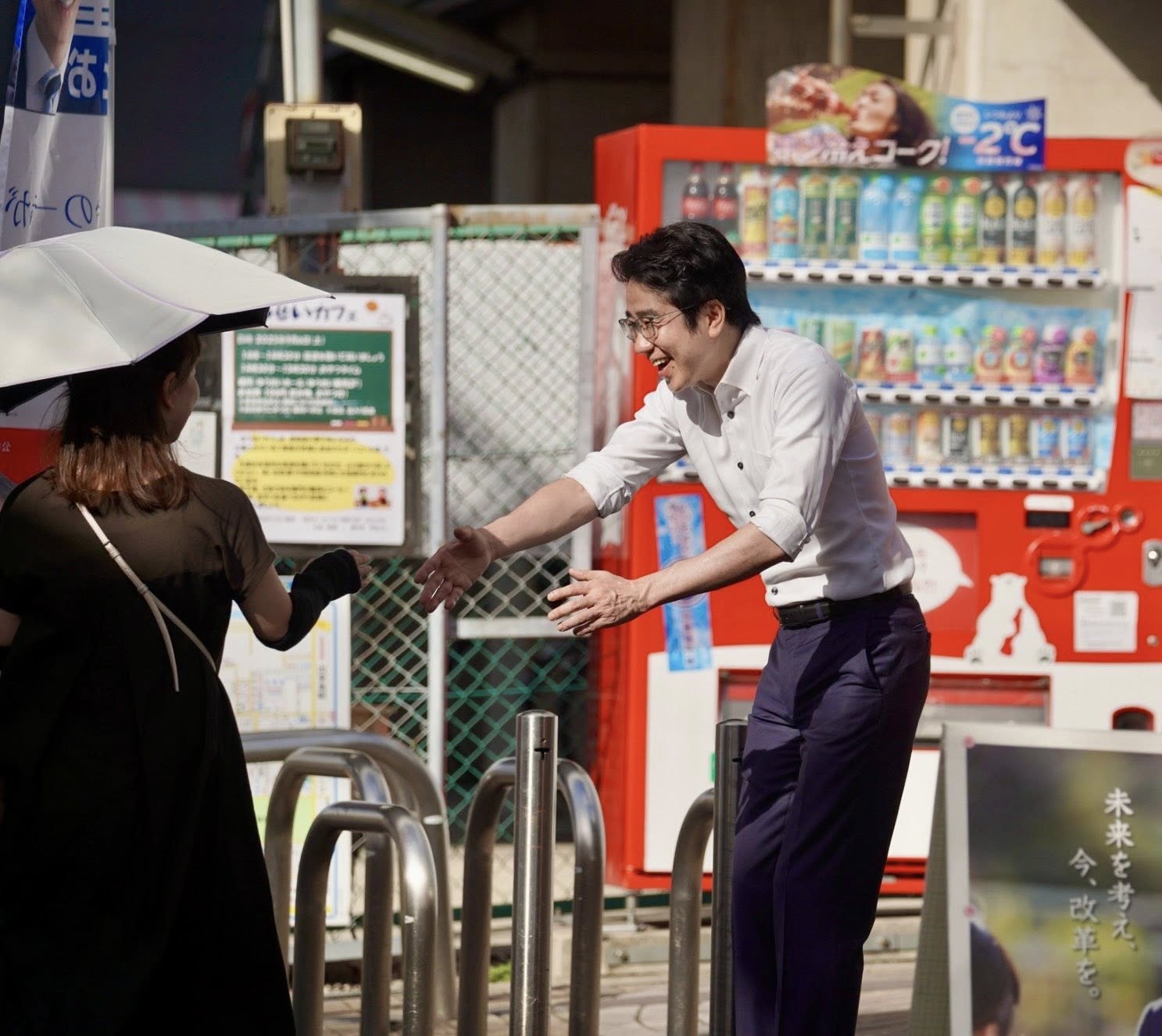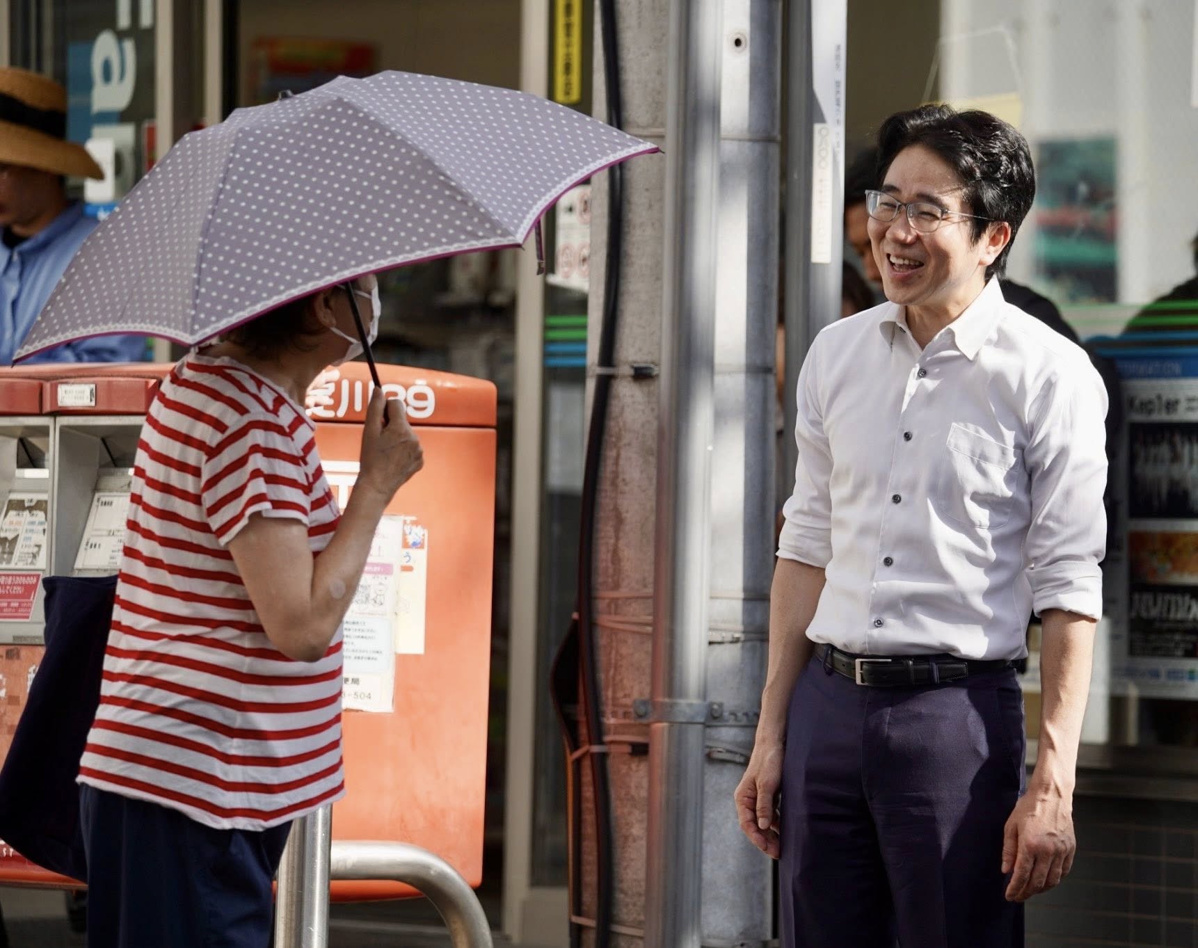 ニュース 朝の駅頭あいさつ 2025.08.23 ニュース Tweet 真夏の太陽に炙られながらの駅頭あいさつ。 太陽は攻撃的でも「暑いのにようやるわ。がんばりや」と人の言葉は優しい。 アメリカのミネソタ州から訪日中のご家族とも懇談。 外国人は総じて笑顔の出力が高い。 Tweet 盆踊り大会前の記事 夏まつり次の記事
